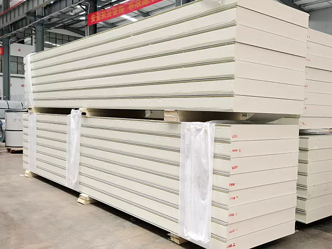 Երկարակեցություն և ամրություն. PU սենդվիչ վահանակների մետաղական արտաքին շերտերն ապահովում են ամրություն և կառուցվածքային ամրություն: Դրանք նախատեսված են եղանակային անբարենպաստ պայմաններին դիմակայելու համար, ինչպիսիք են ուժեղ քամին, անձրևը և ձյունը՝ ապահովելով տան կայունությունն ու երկարակեցությունը: