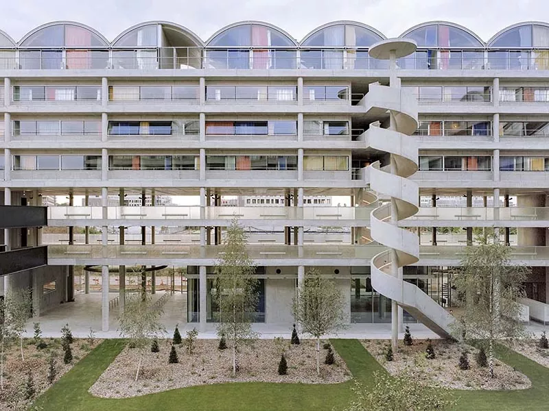 Մինչդեռ պողպատե կառույցի հանրակացարանների ինտերիերի տիեզերական դասավորությունը ճկուն է, ինչը թույլ է տալիս ողջամիտ բաժանել, հիմնվելով ուսանողների կարիքների վրա, տեղակայելով հարմարավետ բնակելի տարածքներ, ուսումնական տարածքներ եւ հանրային գործունեության գոտիներ: Նրանց արտաքին դիզայնը պարզ եւ ժամանակակից է, լավ է խառնվում համալսարանական միջավայրի հետ, իսկ պողպատը վերամշակելի է, շրջակա միջավայրի պաշտպանության հասկացություններին համապատասխան, ուսանողներին ապահովելով անվտանգ, հարմարավետ, գեղագիտական ​​հաճելի միջավայր: